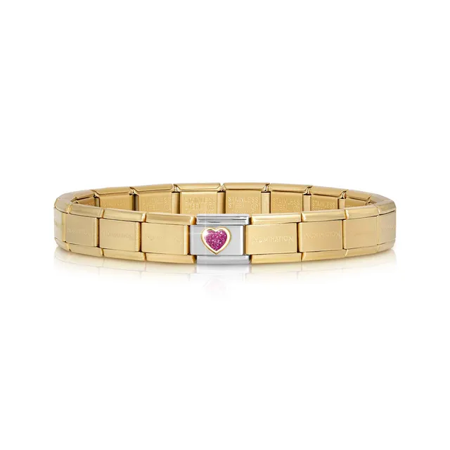Bransoletka Composable Serce z fuksjowym brokatem NOMINATION złota 192