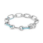 Bransoletka Nomination Italy z kolekcji Drusilla. Wykonana z hipoalergicznej stali szlachetnej. Bransoletka z modnym motywem łańcucha. Wybrane ogniwa ozdobione turkusową emalią. Zapinana na zapięcie typu T-bar wysadzany białymi kryształkami. Dobierz naszyjnik z tej samej kolekcji do kompletu.