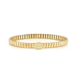 Elastyczna bransoletka wykonana ze stali szlachetnej pokrywanej żółtym złotem i cyrkonii. Pasuje idealnie w zestawie z pierścionkiem z tej samej kolekcji.