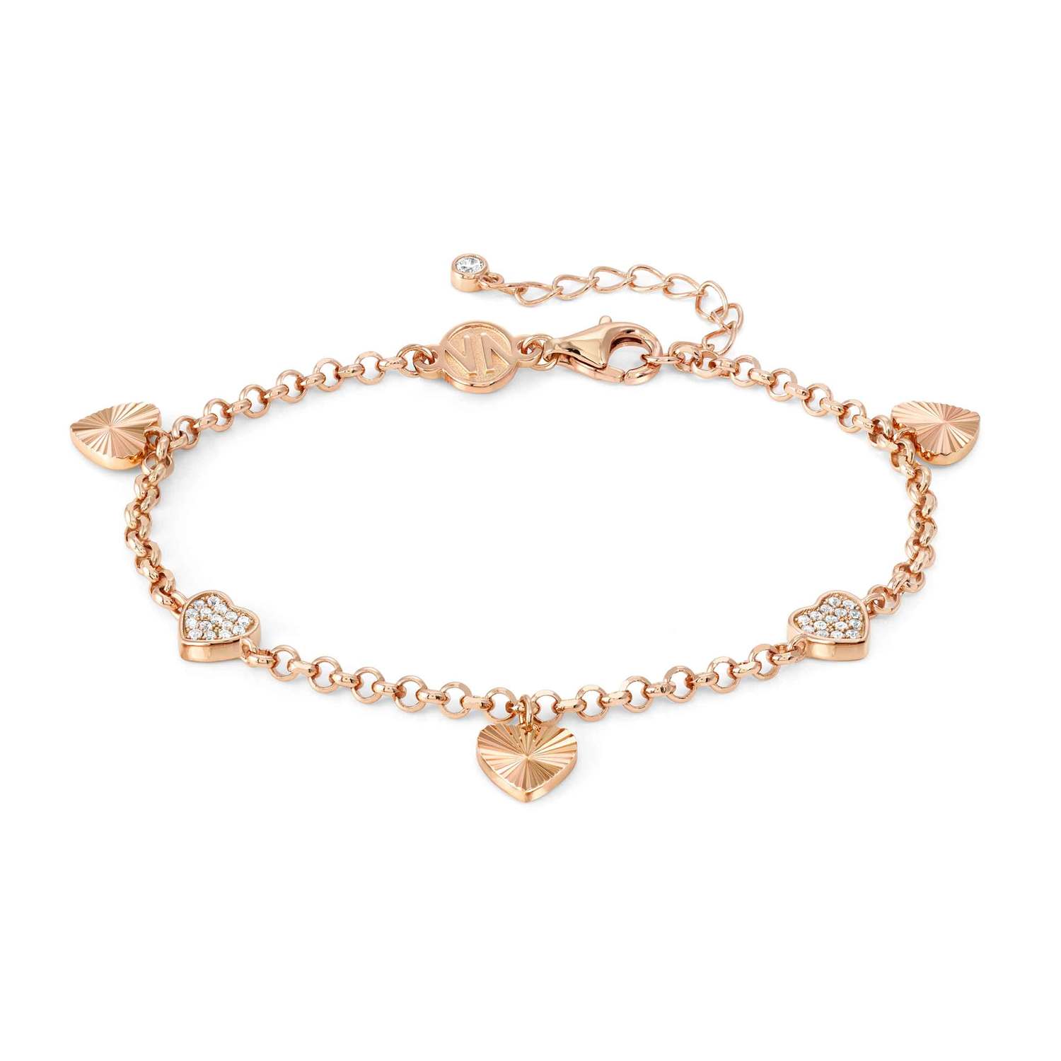 Bransoletka Nomination Italy z kolekcji Truejoy z motywem serca. Bransoletka wykonana ze srebra próby 925 pokrywanego 22K różowym zlotem. Ozdobiona zawieszkami w kształcie serc - o diamentowanej powierzchni oraz wysadzanych cyrkoniami. Zapinana na karabińczyk. Zobacz inne modne bransoletki dostępne w naszym sklepie.
