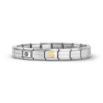 Gotowa bransoletka Nomination Composable Classic składająca się ze stalowej podstawy 18 elementowej oraz 1 ozdobnego elementu wykonanego z 18 karatowego złota na stali szlachetnej.