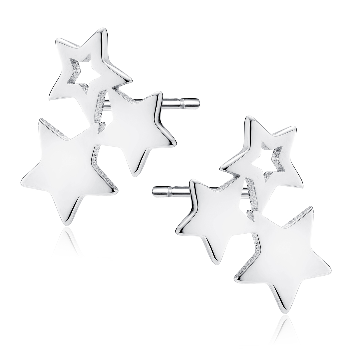 Minimalistyczne srebrne kolczyki gwiazdki wykonane ze srebra próby 925. Prosty, ponadczasowy motyw, który dobrze wpisuje się w minimalistyczny styl. Lekkie i wygodne, zapinane na klasyczny sztyft — odpowiednie do codziennego noszenia.