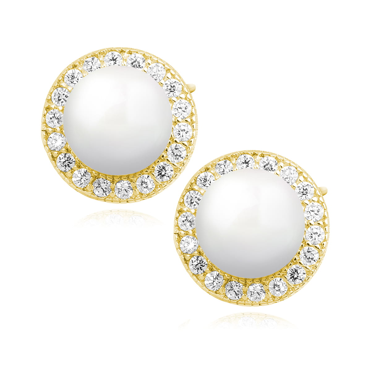 Kolczyki srebro 925 okrągłe perły białe z cyrkoniami złote