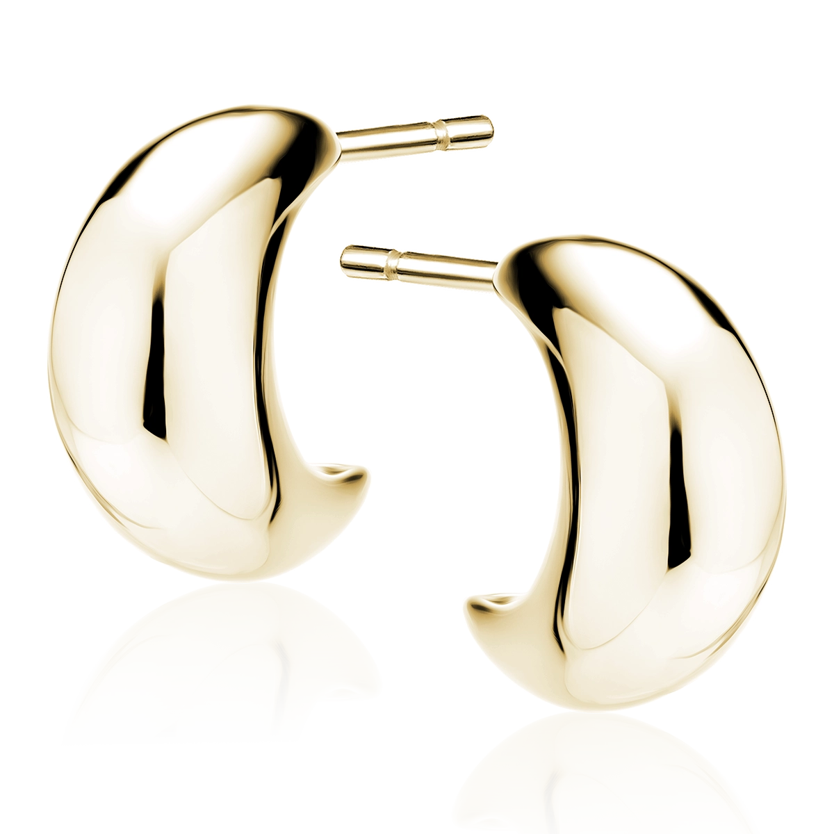 Kolczyki w kształcie półksieżyca, wykonane ze srebra próby 925 pokrywanego 14K złotem. Nie zawierają niklu, kadmu i ołowiu. Zapinane na wkrętki.