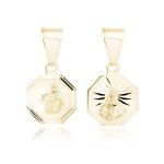 Zawieszka wykonana ze srebra próby 925 pokrywana 24K złotem. Medalik w kształcie heksagonu z wizerunkiem Matki Boskiej. Nie zawiera niklu, kadmu i ołowiu.