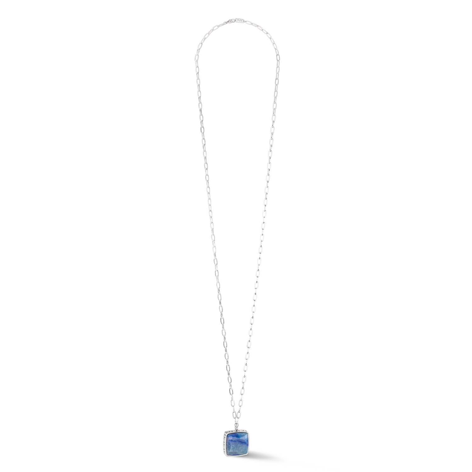 Naszyjnik niemieckiej marki Coeur de Lion wykonany z wysokiej jakości stali szlachetnej 316L. Naszyjnik ozdobiony dużą kwadratową zawieszką z awenturynem. Zawieszka ozdobiona eleganckim grawerem na brzegach.