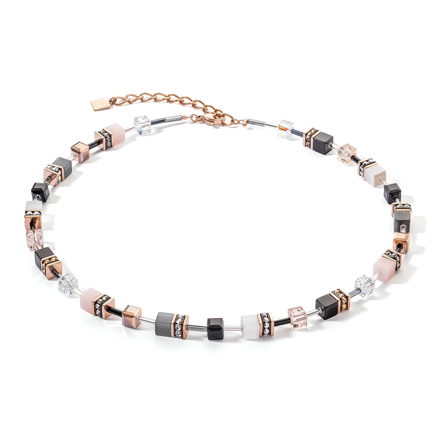 Naszyjnik niemieckiej marki Coeur de Lion wykonany z wysokiej jakości stali szlachetnej 316L. Naszyjnik ozdobiony syntetycznym tygrysim okiem, kryształami Swarovski® oraz stalą szlachetną pokrywaną różowym złotem. Zapinany na karabińczyk. Idealny do zestawienia z bransoletką i kolczykami Coeur de Lion w tym samym kolorze.