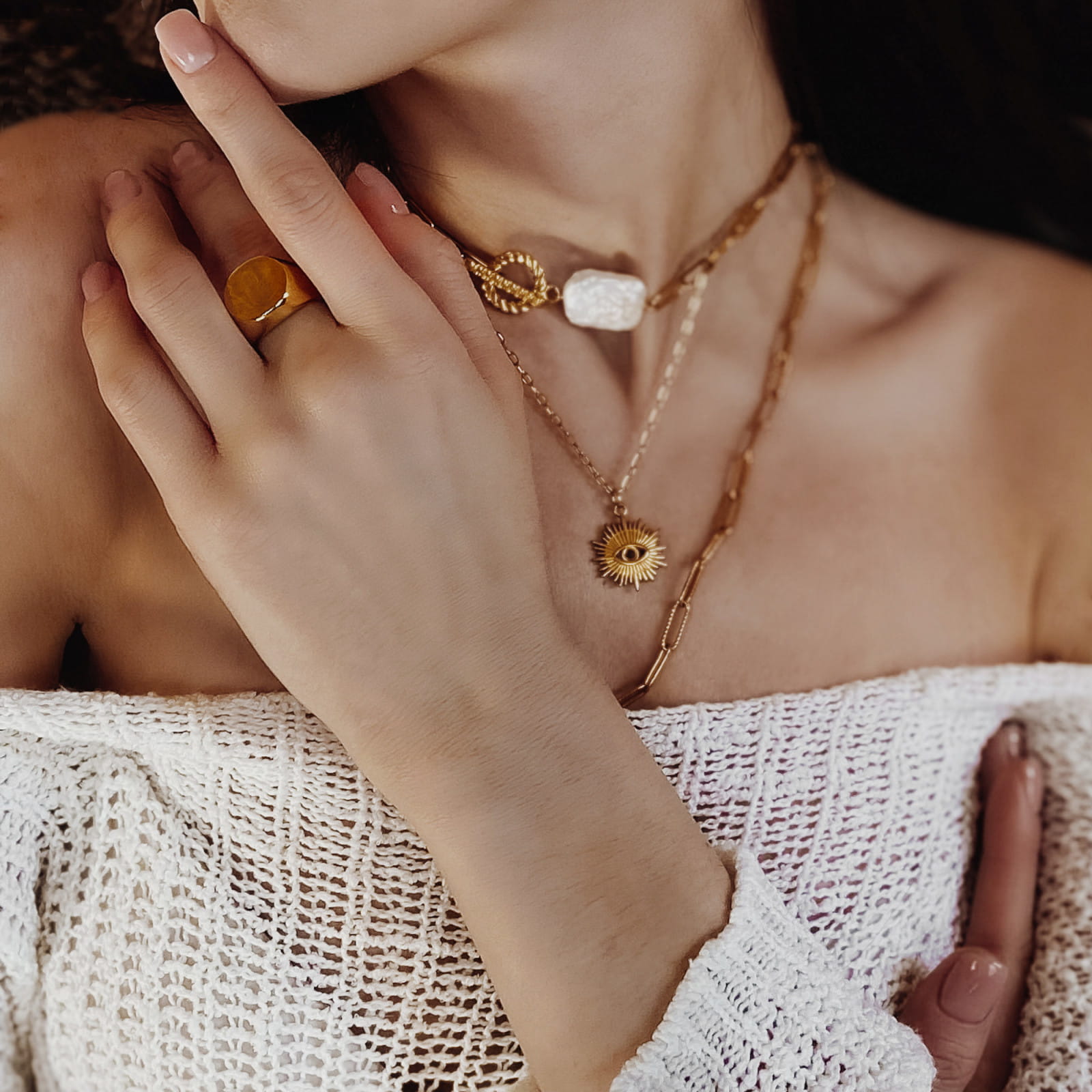 Naszyjnik Manoki wykonany ze stali szlachetnej 316L pozłacanej żółtym złotem. Naszyjnik z łańcucha z zawieszką z motywem oka. Zobacz inne modne naszyjniki dostępne w naszym sklepie z biżuterią.