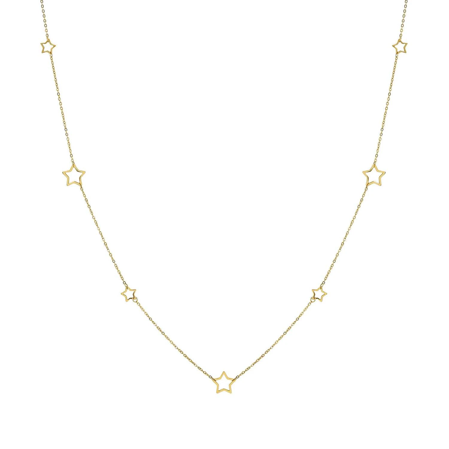 Subtelny naszyjnik damski Nomination Italy wykonany ze stali szlachetnej pokrytej 18-karatowym żółtym złotem, ozdobiony delikatnymi motywami gwiazdek rozmieszczonymi wzdłuż łańcuszka. Lekka, nowoczesna forma inspirowana stylem boho sprawia, że biżuteria pięknie układa się na dekolcie i przyciąga uwagę swoją swobodną elegancją. Gwiazdki symbolizują marzenia, nadzieję i wyjątkowe chwile, a całość tworzy charakterystyczną dla kolekcji Ritmatika kompozycję – lekką, kobiecą i idealną na sezon wiosna–lato. Regulowane zapięcie pozwala dopasować długość naszyjnika do własnych preferencji.
