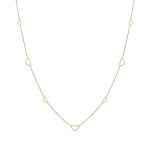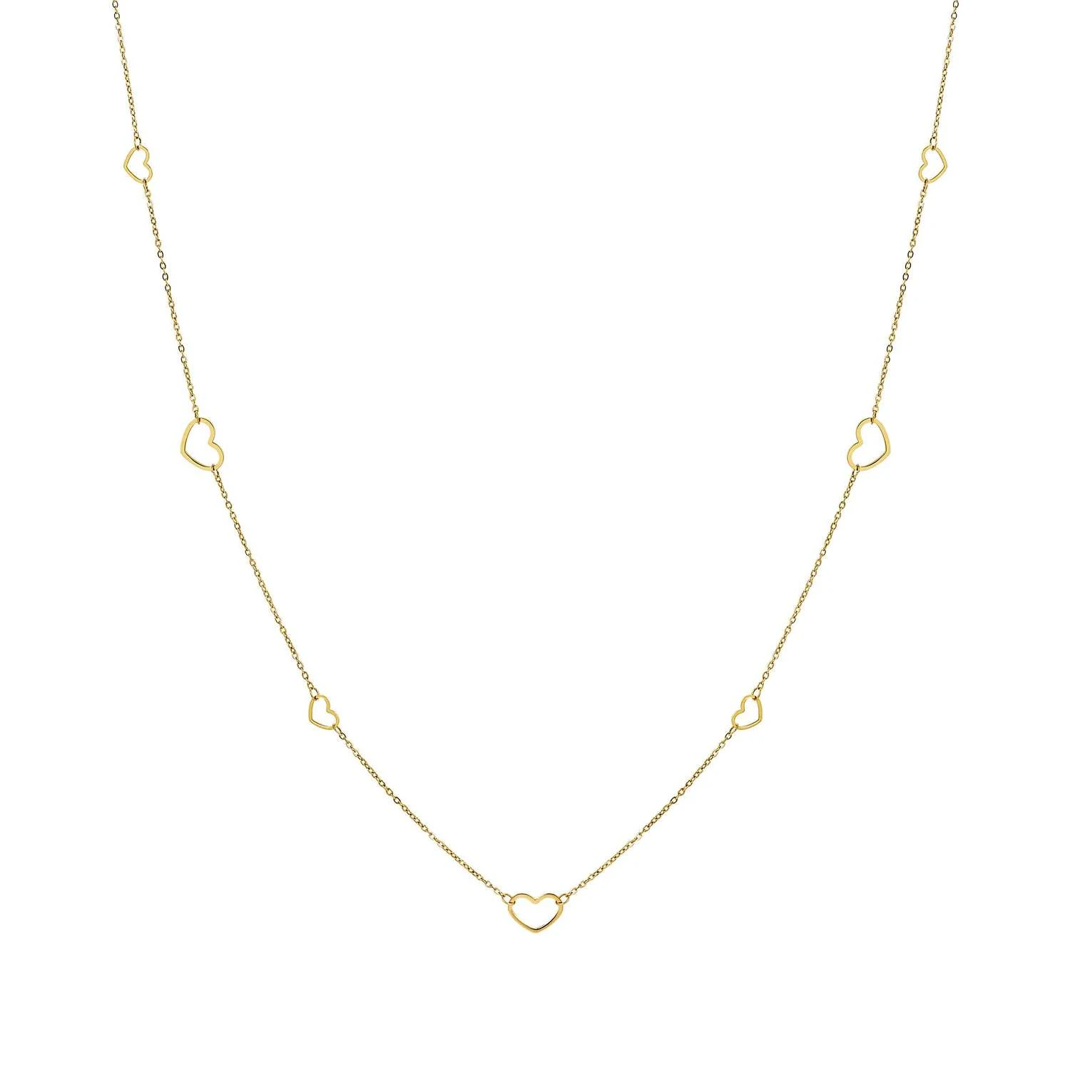 Subtelny naszyjnik damski Nomination Italy wykonany ze stali szlachetnej pokrytej 18-karatowym żółtym złotem, ozdobiony delikatnym motywem serca. Lekka, nowoczesna forma łańcuszka została uzupełniona drobnymi serduszkami, które nadają biżuterii romantycznego i kobiecego charakteru. Minimalistyczny design sprawia, że naszyjnik pięknie układa się na dekolcie i podkreśla jego linię, zachowując jednocześnie elegancki, współczesny styl kolekcji Ritmatika.