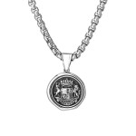 Naszyjnik Manoki wykonany ze stali szlachetnej 316L z zawieszką stylizowaną na pieczęć z herbem. Zobacz inne męskie naszyjniki i całą kolekcję męskiej biżuterii w naszym sklepie.