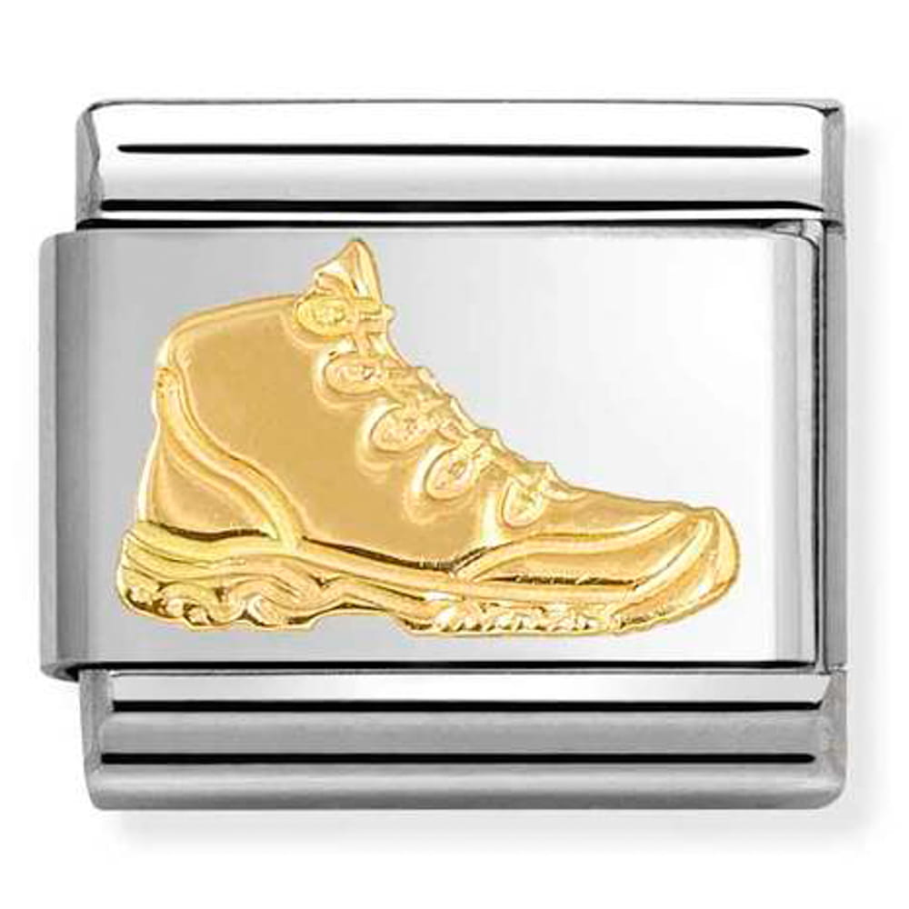 Element do bransoletki komponowanej Nomination Italy z butem trekkingowym (Trekking Shoe). Link wykonany ze stali szlachetnej, a symbol ze złota 18K próby 750.