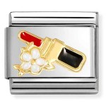 Element do bransoletki komponowanej Nomination Italy z czerwoną szminką (Red Lipstick). Link wykonany ze stali szlachetnej, a symbol ze złota 18K próby 750 i emalii.