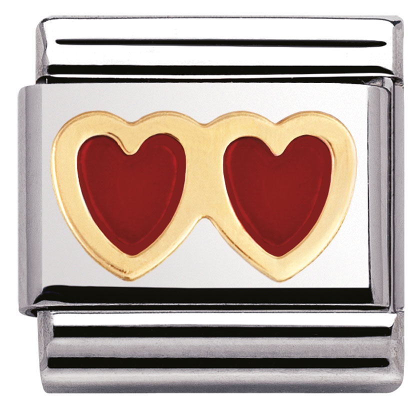 Nomination Element 18K Podwójne czerwone serduszko Gold