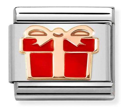 Czerwony prezent (Red gift) - element do bransoletki komponowanej marki Nomination Italy wykonany z 9K różowego złota na stali szlachetnej i emalii. Pasuje do wszystkich podstaw z kolekcji Composable Classic.