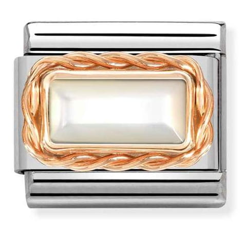 Element do bransoletki komponowanej Nomination Italy. Link wykonany ze stali szlachetnej, 9K różowego złota i kamienia. Przedstawia prostokątną perełkę (White Mother of Pearl).