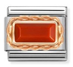 Prostokątny kamień - czerwony koral (Red Coral) - link Nomination z kolekcji Rose Gold wykonany z wysokiej jakości stali szlachetnej, 9K różowego złota i kamienia.