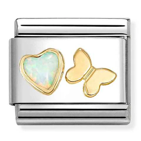 Nomination Element Link 18K Serce z białym opalem z motylkiem Gold