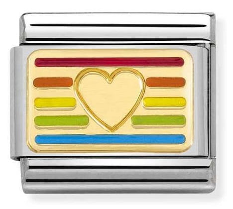 Nomination Element Link 18K Tęczowa flaga serce Gold