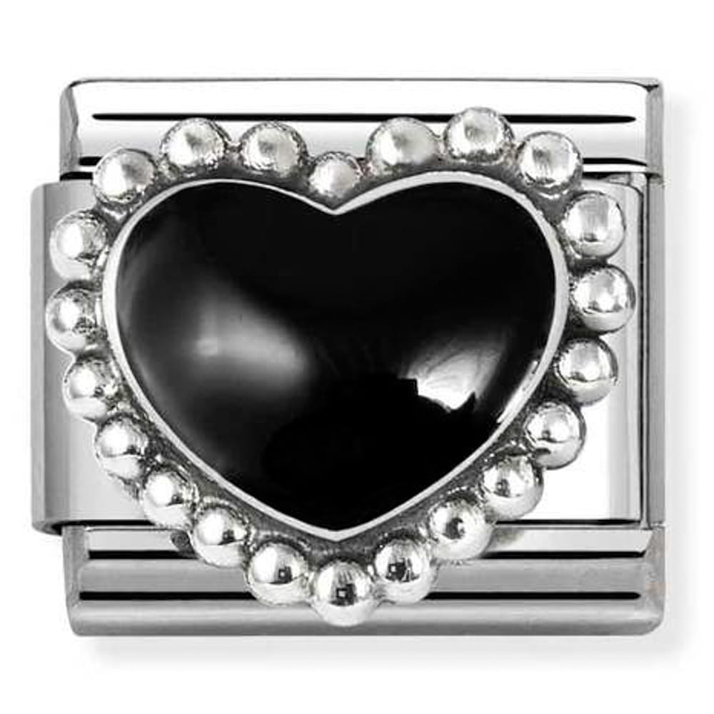 Element do bransoletki komponowanej Nomination Italy z czarnym sercem (Black Heart). Link wykonany ze stali szlachetnej i srebra próby 925.
