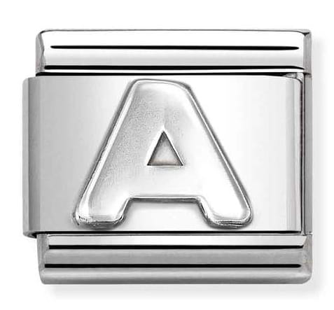 Element do bransoletki komponowanej Nomination Italy z literą "A". Link wykonany ze stali szlachetnej, a symbol ze srebra próby 925.