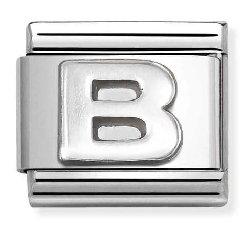 Link ozdobny z kolekcji Nomination Composable Silver z literą "B". Element wykonany został ze stali szlachetnej w kolorze srebrnym oraz ze srebra próby 925.