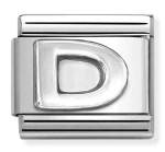 Link Nomination z kolekcji Silver wykonany z wysokiej jakości stali szlachetnej oraz symbolu ze srebra próby 925. Symbol przedstawia literę "D".