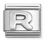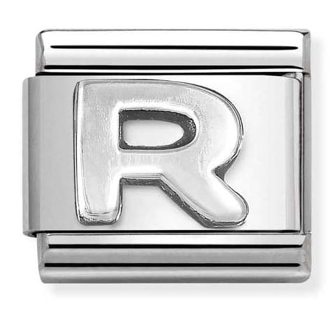Element wymienny do bransoletki personalizowanej Nomination z literą "R". Baza elementu wykonana jest ze stali szlachetnej, a symbol to srebro próby 925.
