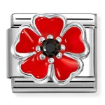 Baza elementu wykonana jest ze stali szlachetnej, a motyw maku został ozdobiony emalią oraz detalami ze srebra próby 925. Intensywny, kwiatowy wzór symbolizuje pamięć, wolność oraz naturalne piękno, nadając biżuterii wyrazisty i elegancki charakter. Ten wyjątkowy link pochodzi z kolekcji elementy Nomination srebrne, łącząc klasykę z subtelną kolorystyką inspirowaną naturą.