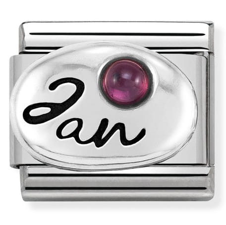 Element do bransoletki komponowanej Nomination Italy Classic. Kolekcja składa się z linków z miesiącami urodzinowymi i przypisanymi do nich kamieniami. Element wykonany jest ze stali szlachetnej, symbolu ze srebra próby 925 i kamienia naturalnego (granat).