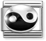 Link ozdobny z kolekcji Nomination Composable Silver z symbolem Yin Yang. Element wykonany został ze stali szlachetnej w kolorze srebrnym oraz ze srebra próby 925 i emalii.