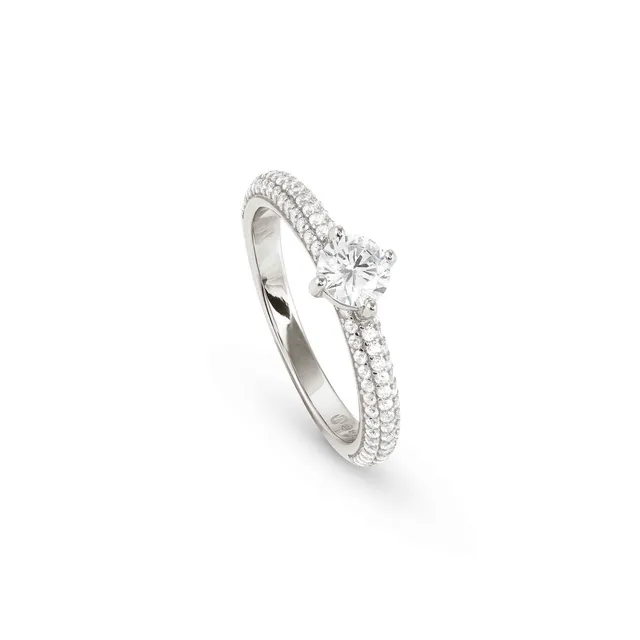 Pierścionek Nomination Italy z kolekcji Aurea. Pierścionek wykonany ze srebra próby 925. Ozdobiony cyrkoniami w kolorze białym.