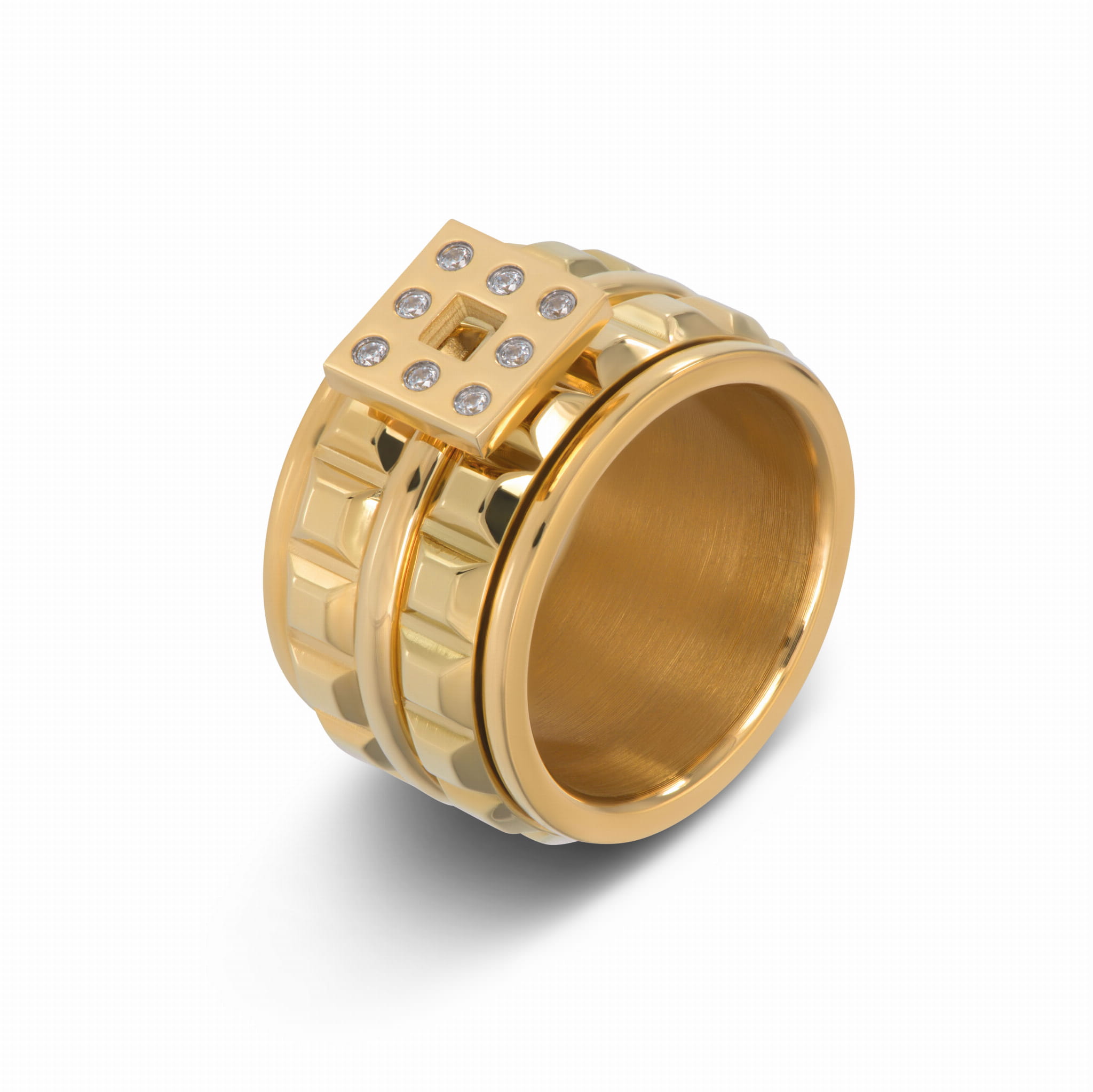 Pierścionek iXXXi wykonany ze stali szlachetnej. Jest to gotowa kompozycja składająca się z bazy o szerokości 12 mm i 3 wypełniających ją ringów. Pierścionek daje możliwość późniejszej dowolnej wymiany ringów na bazie poprzez jej rozkręcenie. Twój pierścionek może się zmieniać w każdej chwili wraz z Tobą i Twoją fantazją. Pokochasz biżuterię iXXXi za jej oryginalność i ponadczasowość. Wybierz gotową kompozycję lub stwórz swój zestaw z ringów wymiennych iXXXi.