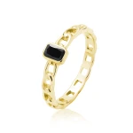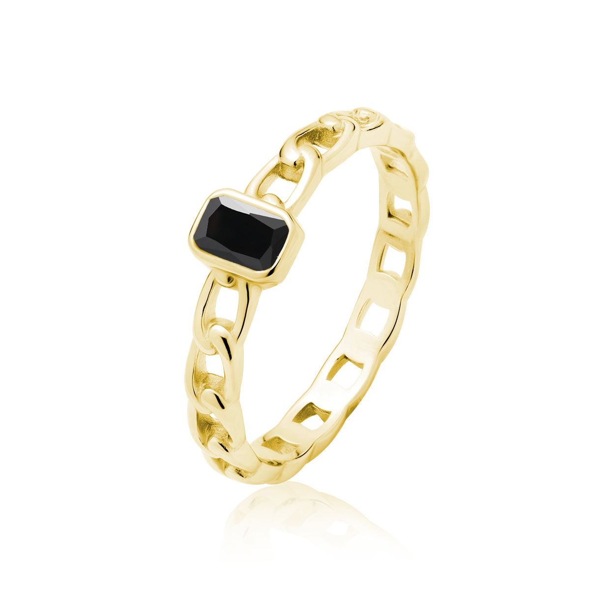 Pierścionek srebro 925 łańcuch z czarną cyrkonią złoty