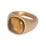 Pierścionek męski marki iXXXi wykonany ze stali szlachetnej ze złotą powłoką PVD. Sygnet został ozdobiony brązowo-czarnym kamieniem. Idealny prezent dla Niego na Walentynki, Dzień Chłopaka, urodziny, czy inną okazję.