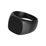 Pierścionek męski marki iXXXi wykonany ze stali szlachetnej z czarną powłoką PVD. Sygnet został ozdobiony oczkiem z wyżłobionymi nieregularnymi kropkami. Idealny prezent dla Niego na Walentynki, Dzień Chłopaka, urodziny, czy inną okazję.