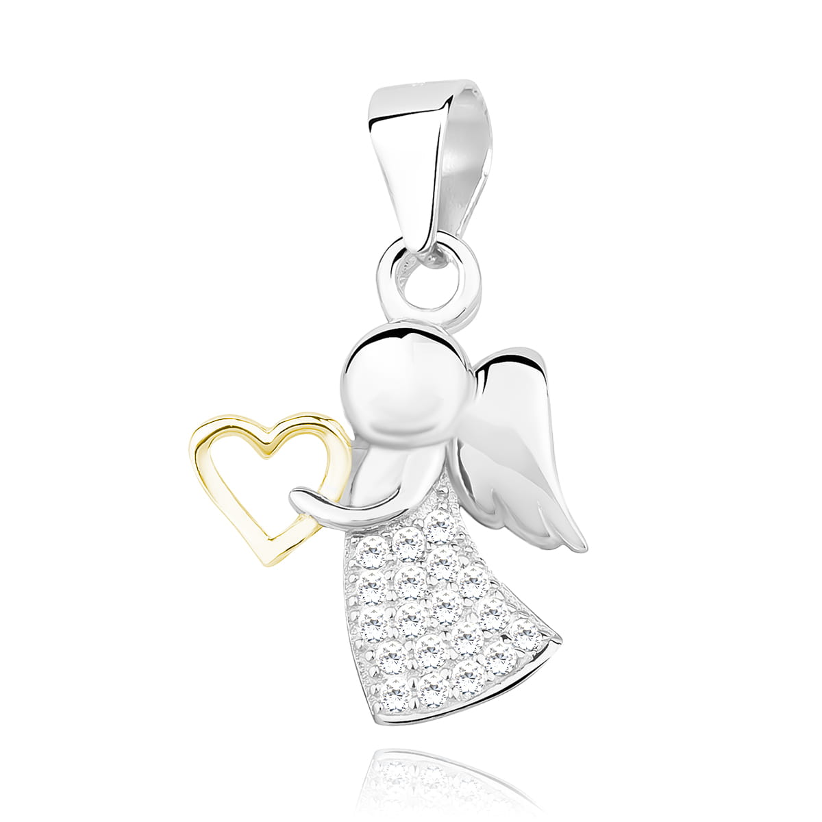 Zawieszka srebro 925 anioł z cyrkoniami i pozłacanym sercem