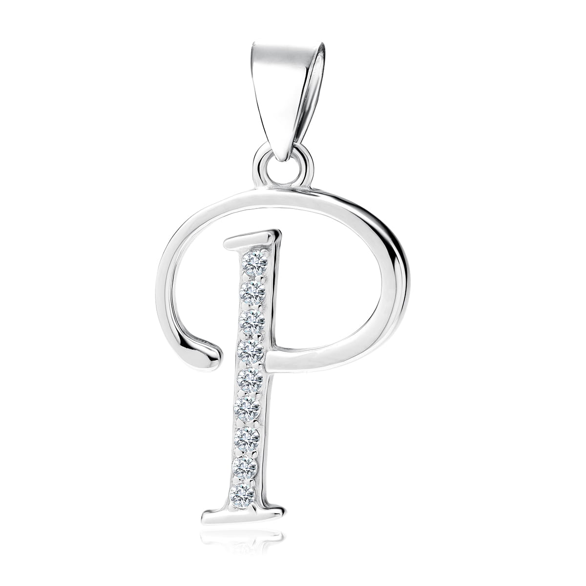 Zawieszka wykonana ze srebra próby 925. Elegancka litera "P" ozdobiona kilkoma lśniącymi cyrkoniami. Nie zawiera niklu, kadmu i ołowiu. Dobierz łańcuszek i stwórz piękny naszyjnik ze srebra.