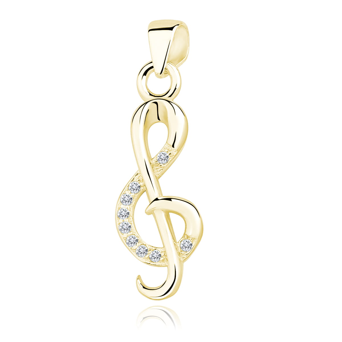 Zawieszka wykonane ze srebra próby 925 pokrywanego żółtym złotem 14K. Zawieszka w kształcie klucza wiolinowego z cyrkoniami. Nie zawiera niklu, kadmu i ołowiu. Dobierz łańcuszek i stwórz piękny naszyjnik ze srebra.